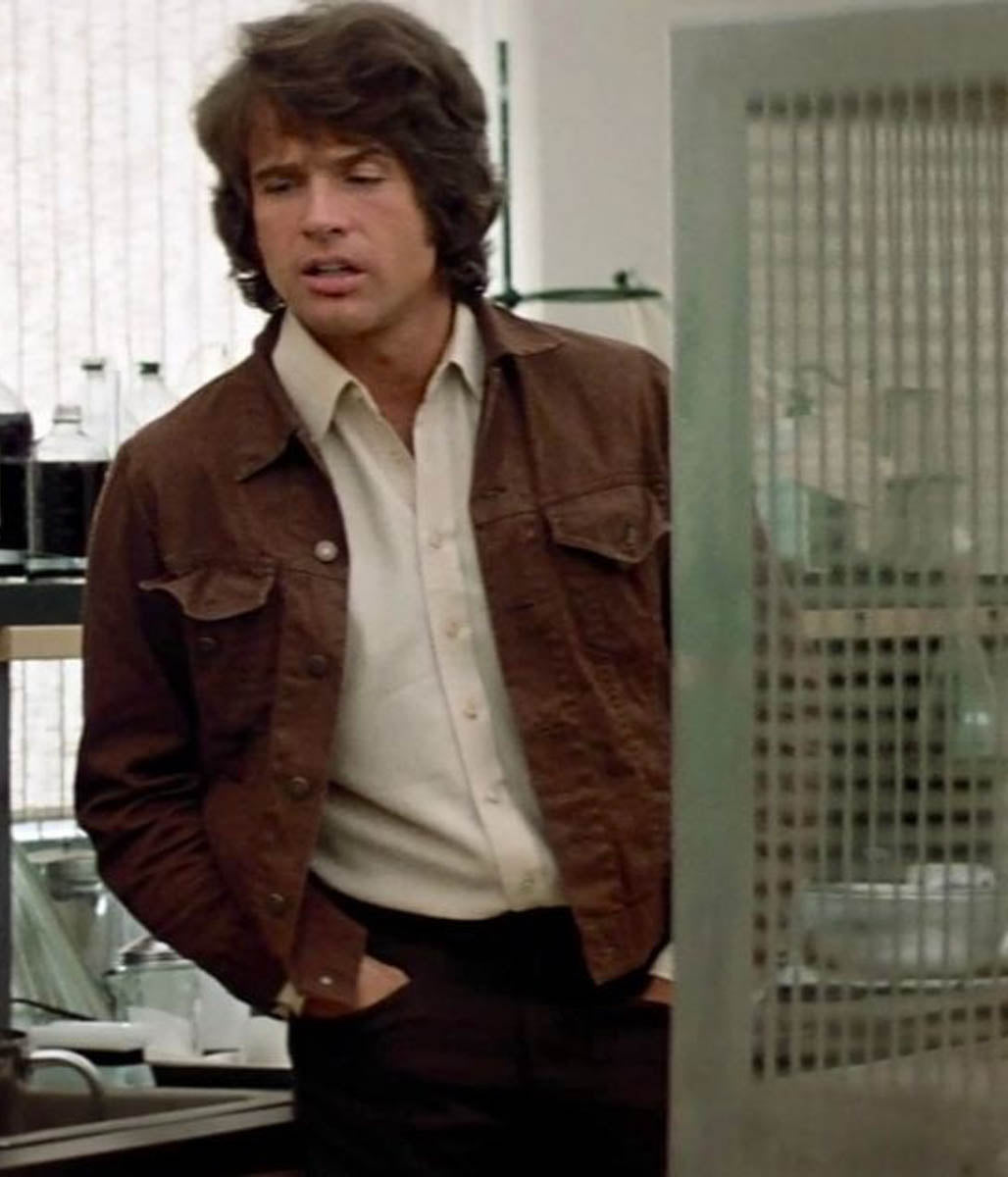 Designed to withstand wind and rain while preserving a sleek silhouette, the Parallax View Warren Beatty Jacket is a tough brown trucker-style coat made from premium waxed cotton fabric.